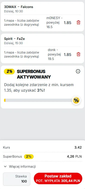 Kupon gramy z Superbet, który ma sporo ciekawych zakładów na esport. Sprawdzaj kod promocyjny superbet i zobacz co na ciebie czeka.
