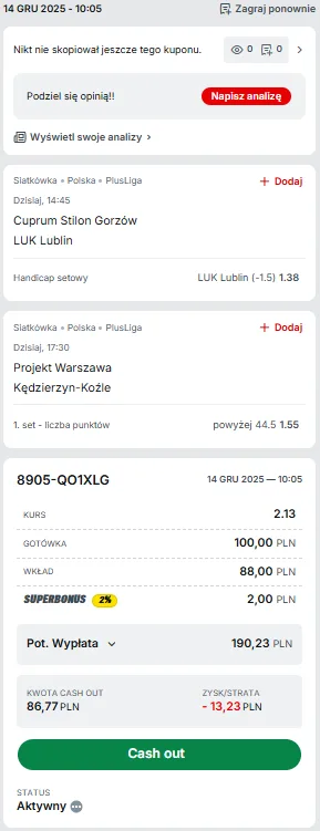 6 dni obstawiania ze mną = 13/14 trafionych typów, a 11/12 siatkarskich! Gramy o 190 PLN