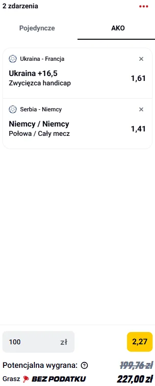 Handicap bramkowy: Ukraina (+16.5) - Francja - TAK