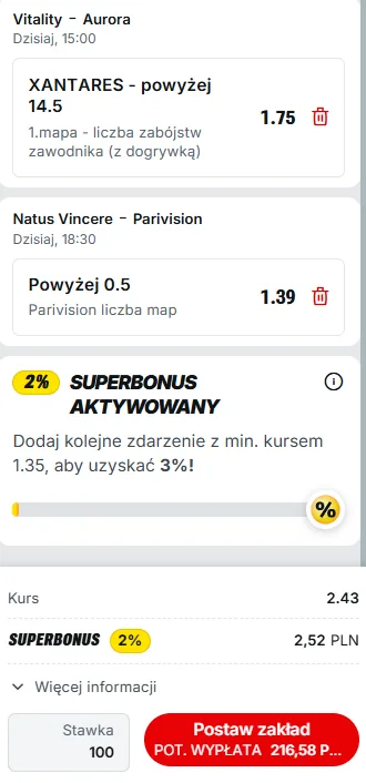 Aurora znajdzie sposób na Vitality? Gramy esport z kursem 2.43!