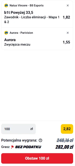 Typ: Aurora wygra mecz. Jest to jedna z najlepszych organizacji na świecie, a Parivision mimo solidnej gry ma gorsze momenty. Aurora w formie jest naprawdę ciężka do zatrzymania bo oferują sporą siłę ognia w swoim zespole. Myślę, że są po prostu na ten moment za mocni dla Parivsion, które gra średnio w formacie bo1.