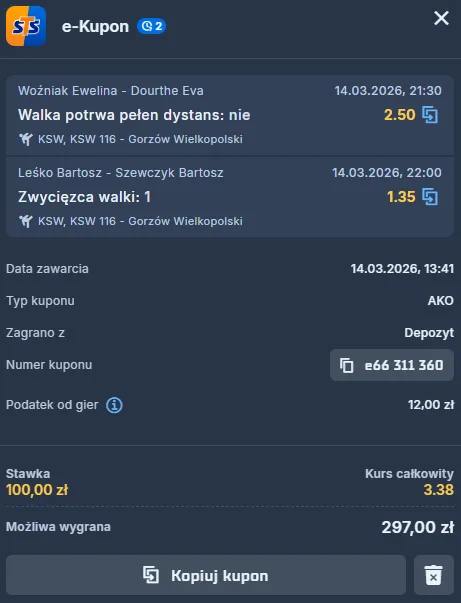 Bartosz Leśko pokona Szewczyka, a Ewelina Woźniak ogra Evę Dourthe? Gramy o 297 PLN