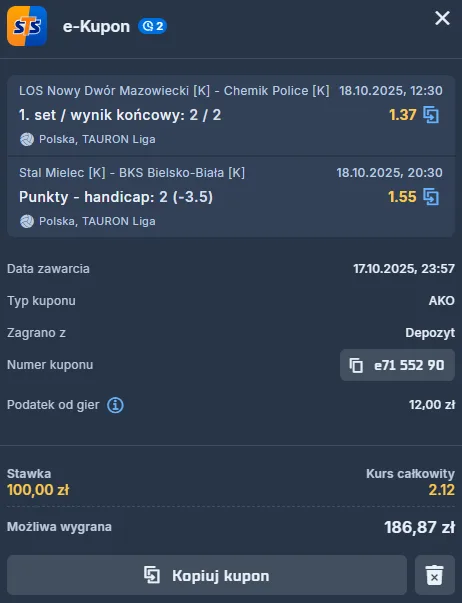 Podsumowując, drugim typem dnia jest wskazanie (z kodem promocyjnym STS-u), że na dystansie spotkania bielszczanki będą w stanie uzbierać o przynajmniej 4 punkty więcej. Co prawda broniące barw gospodarzy włożą wiele wysiłku w to, by uprzykrzyć życie faworytkom, ale jednak… Nawet po letnich zmianach BKS jest na tyle silniejszym zespołem, ze jednak powinny się odkuć po 1. kolejce.