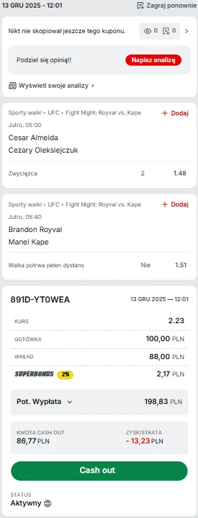 Brandon Royval zaskoczy i pokona Kape, a Oleksiejczuk Almeidę? Gramy o 199 PLN
