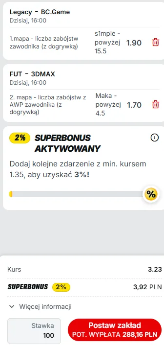 Co pokaże S1mple? Gramy esport z kursem 3.23!
