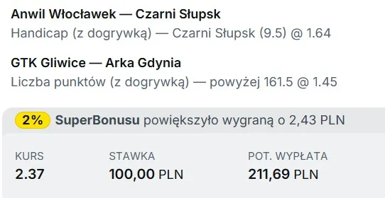 Anwil będzie miało trudne zadanie w tym meczu. Po pierwsze, drużyna nie jest w najwyższej formie – mają już trzy porażki, w tym dwie u siebie, a po drugie w środę grali mecz w FIBA Europe Cup, więc regeneracja będzie ograniczona, a czasu na analizę rywala prawdopodobnie brak. Czarni natomiast będą wypoczęci, a do gry wraca Aigars Škele. Typuję handicap +9.5 dla Czarnych Słupsk. Pamiętaj, że czekają na Ciebie tylko i wyłącznie legalni bukmacherzy!