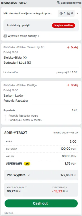 Stawiający typ dnia na to spotkanie, którzy zajrzą do Superbet, przekonają się, że ten operator triumfowi Asseco Resovii przypisał kurs 1.18, a ewentualnej wiktorii Barkomu już 4.70. Wysokość tej różnicy jest o tyle uzasadniona, że występujący w roli gospodarza wyglądają coraz słabiej. Są zespołem, który w zasadzie wyczekuje już przerwy, aby wyrównać formę w czasie nawet nie tyle spokojnego treningu, co odpoczynku od siatkówki. Z kolei rzeszowianie nadal śmiało sobie poczynają. Wyglądają na zespół, którego zmęczenie praktycznie się nie ima.