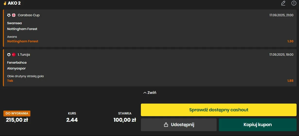 W EFL Cup czeka nas starcie Swansea z Nottingham Forest – walijczycy liczą na niespodziankę, ale zmierzą się z drużyną, która jeszcze niedawno była siódmą siłą Premier League. To pojedynek, w którym różnica jakości kadrowej może być aż nadto widoczna. Z kolei w tureckiej Super Lig emocje budzi mecz Fenerbahce z Alanyasporem – faworyt jest oczywisty, ale ekipa z Alanyi już pokazała, że potrafi sprawić kłopot nawet największym.