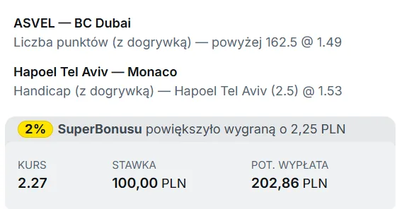 Bez wątpienia trzeba odnotować fenomenalną dyspozycję Hapoelu Tel-Aviv. Drużyna legitymuje się obecnie niesamowitą serią 4 zwycięstw z rzędu, a dzisiejszy mecz może być okazją do kolejnego triumfu. Monaco z kolei nie jest wolne od błędów i potknięć, co dodatkowo zwiększa szanse gospodarzy. Typuję handicap +2,5 dla Hapoelu Tel-Aviv – zespół ma potencjał, by utrzymać rywala w ryzach i nie dopuścić do dużej różnicy punktowej. Pamiętaj, że czekają na Ciebie tylko i wyłącznie legalni bukmacherzy!