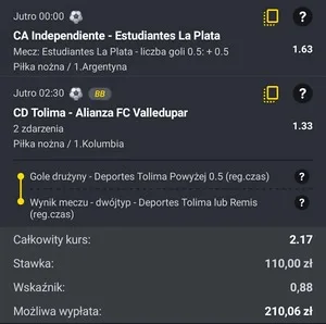 Wczorajsza nocka niestety nie przyniosła nam profitu. Velez Sarsfield oczywiście nie zawiódł i wygrał 1:0. Natomiast Defensa zaledwie bezbramkowo zremisowała z Aldosivi. Obie ekipy przerwały zatem swoją świetną passę w strzelaniu wielu goli w swoich bezpośrednich starciach. Dziś jednak ponownie zaglądnę do Argentyny. Independiente zagra dzisiejszej nocy z aktualnym Mistrzem Argentyny- Estudiantes. Dodatkowo przyjrzę się również lidze kolumbijskiej, w której to Tolima zagra dzisiaj z Alianzą. Miłej lektury!