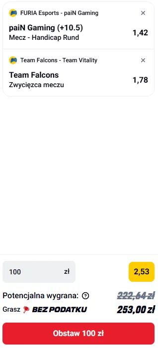 Typ: Falcons wygra mecz. Vitality nie jest w tak dobrej dyspozycji i zdecydowanie da się ich pokonać. Jeżeli M0nesy zagra na odpowiednim poziomie, to Vitality będzie bardzo ciężko rywalizować w tym starciu. Falcons w końcu musi się przełamać, a tutaj mają bardzo wymagającego rywala, któremu chcą się zrewanżować.