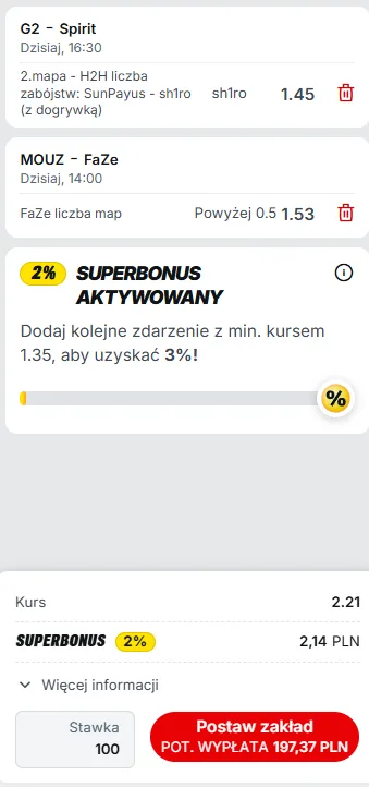 Sprawdzaj kod promocyjny superbet i przekonaj się jakie zakłady i promocje na ciebie czekają. Wchodź w zakładkę typy na esport, gdzie czekają na ciebie analizy i przewidywania spotkań esportowych.