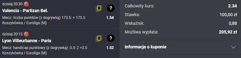 To bardzo ważne spotkanie, bo mówimy o francuskich derbach w Eurolidze. Co ciekawe, obie drużyny przystępują do tego meczu w podobnych nastrojach – po porażkach na krajowym podwórku, ale jednocześnie po zwycięstwach w Eurolidze, co tylko dodaje temu starciu dodatkowego smaczku. W ogólnym rozrachunku wyżej należy jednak stawiać Paris Basketball, przede wszystkim ze względu na mocniejszy i bardziej zbilansowany skład. Paris, nawet gdy przegrywa, w większości spotkań potrafi dotrzymywać tempa rywalom i długo pozostaje w grze, podczas gdy ASVEL Lyon-Villeurbanne miewa mecze, w których kompletnie się rozsypuje – jak chociażby wysoka, 32-punktowa porażka z Monaco. Spodziewam się wyrównanego pojedynku, ale z lekkim wskazaniem na Paris, dlatego typuję handicap +3.5 dla Paris Basketball. Zachęcam do regularnego obserwowania zakładki typy dnia lub do sprawdzenia innych propozycji na Zagranie!