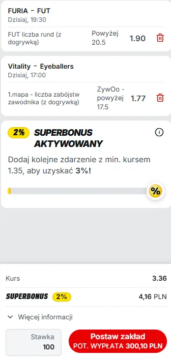 Typ: Zywoo zdobędzie powyżej 17.5 zabójstw (1. mapa). Pierwsza mapa powinna być wyborem Eyeballers i spodziewam się, że będą chcieli mocno zaskoczyć swoich rywali. Grając na taką ekipę jak Vitality trzeba kombinować. Zywoo będzie miał jednak świetne warunku, bo JW jest obecnie bardzo przeciętnym snajperem i w meczu z Faze miał tylko 5 zabójstw z broni snajperskiej łącznie na trzech mapach. Zywoo powinien to po prostu wykorzystać.