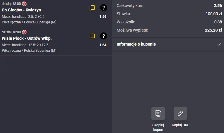 Emocjonujący się spotkaniami szczypiornistów zdążyli się już przyzwyczaić w tym sezonie do tego, że środowe wieczory upływają pod znakiem meczów EHF Ligi Mistrzów. Jednak 1. dnia października zostaną rozegrane konfrontacje, których stawką co prawda będą kolejne punkty, ale w ORLEN Superligi. Obie rozpoczną się o tej samej porze, czyli o godzinie 18:00. Bukmacherzy sądzą, że z wygranych będą cieszyli się zawodnicy KGHM-u Chrobry Głogów i ORLEN-u Wisły Płock.