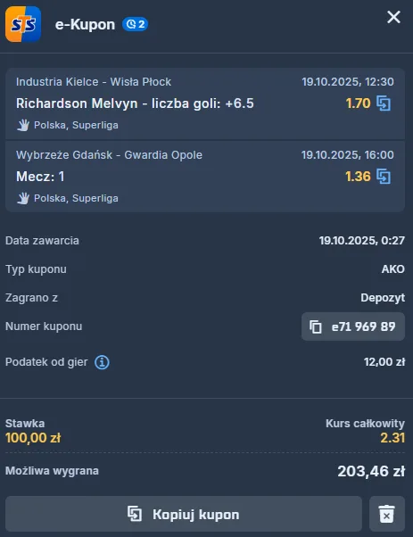 Natomiast zespół Corotopu Gwardii Opole jest obecnie teamem, który jeśli ma sięgać po triumfy, to nad ligowymi sąsiadami. Triumfy nad Stalą Mielec i KS Azotami-Puławy są cenne, ale kiedy oni są klasyfikowani na 10. miejscu, tak ci rywale plasują się na 8. i 11. lokacie. W ostatniej kolejce co prawda dali się we znaki Netlandowi MKS-owi, ale i tak im ulegli. Dosłownie na każdej pozycji w wyższej formie są szczypiorniści gospodarzy; nawet ci pełniący rolę rezerwowych. Stąd też obstawiam z kodem promocyjnym STS-u ich wygraną.