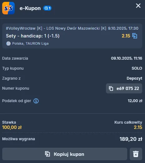 #VolleyWrocław – EcoHarpoon NOWEL LOS Nowy Dwór Mazowiecki: typy, kursy bukmacherskie i zapowiedź meczu (09.10.2025 r.)