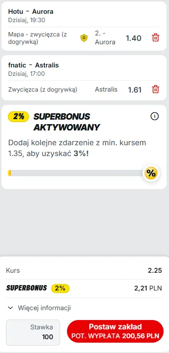Dzisiaj gramy z bukmacherem Superbet, który ma w ofercie sporą liczbę zakładów na esport. Sprawdź kod promocyjny superbet i przekonaj się sam.