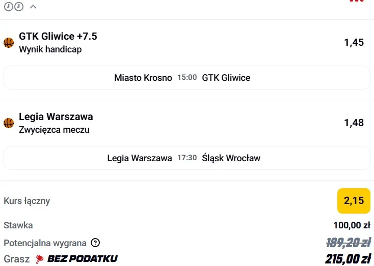 Bez Kadre Graya Śląsk Wrocław traci bardzo dużo jakości, szczególnie w organizacji gry. Tymczasem Legia Warszawa wyraźnie łapie rytm i z meczu na mecz wygląda coraz lepiej. Dzisiejsze spotkanie zostanie rozegrane na Bemowie, gdzie Legia ma w tym sezonie solidny bilans 8:2. Do tego dochodzi aspekt rewanżu – w pierwszym starciu Śląsk rozbił Legię aż 98:84, więc gospodarze będą dodatkowo zmotywowani. Wszystko wskazuje na to, że role mogą się dziś odwrócić. Typuję wygraną Legii Warszawa. Zachęcam do regularnego obserwowania zakładki typy dnia lub do sprawdzenia innych propozycji na Zagranie!