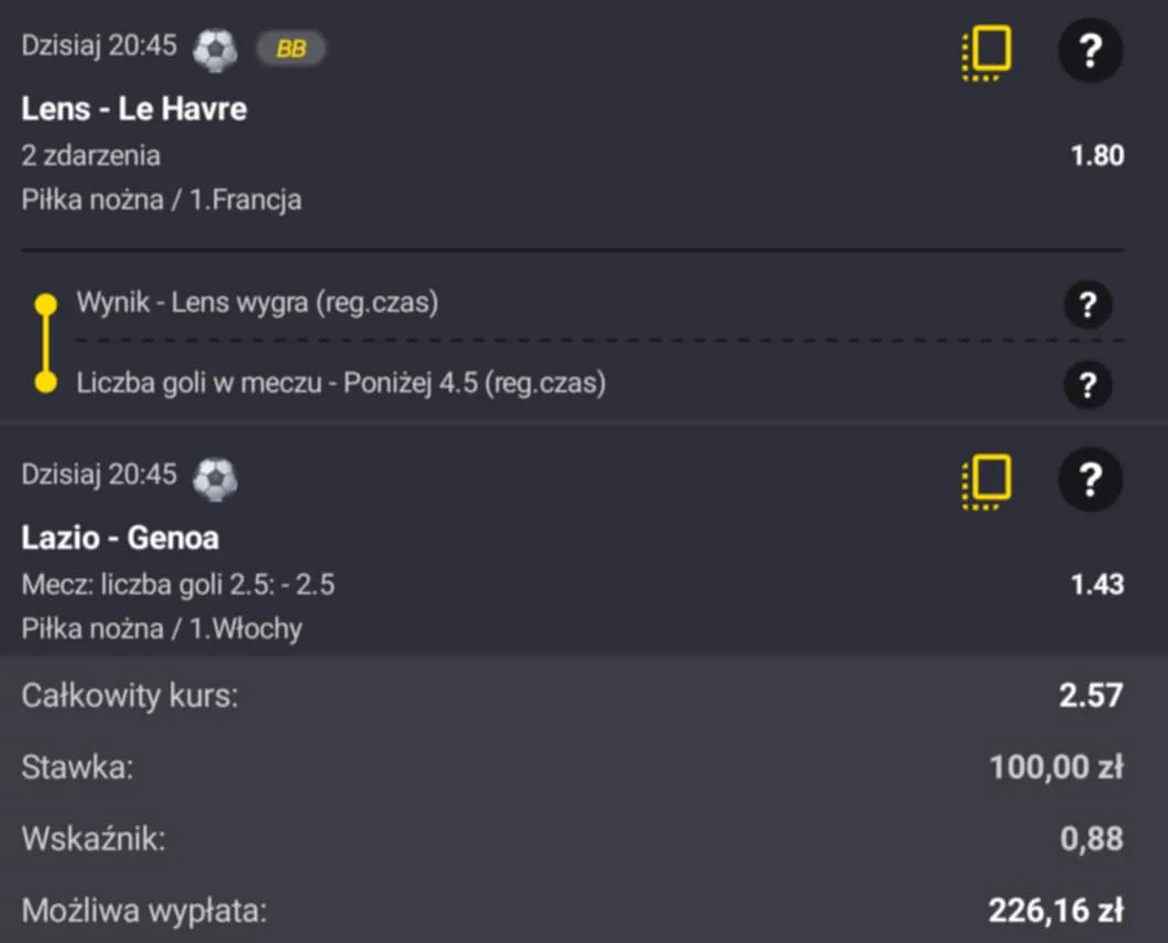 Dziś ruszamy z kolejnymi meczami ligowymi. O 20:45 odbędą się starcia Lens z Le Havre w Ligue 1 oraz Lazio z Genoą w Serie A i to właśnie te dwa pojedynki trafią na mój dzisiejszy kupon. W jaki sposób rozpoczną się weekendowe zmagania? Sprawdź, co moim zdaniem warto zagrać. Życzę przyjemnej lektury.