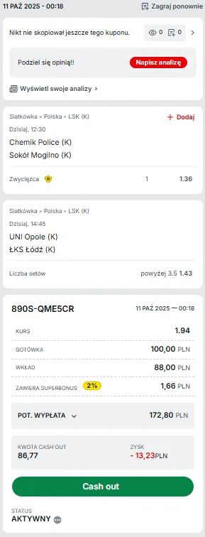 Tyle tylko, że tego lata w ich szeregach zaszły spore zmiany. Tym samym oto drużyna opolskiej UNI rzeczywiście realnie może się postawić wyżej notowanym rywalkom. Co prawda najpewniej nie aż na tyle, aby nagle wygrać mecz z ŁKS-em, ale… Wywalczenie seta będzie pokazaniem, że UNI zaczyna kroczyć we właściwym kierunku. Stąd też moim drugim typem siatkarskim granym z kodem promocyjnym Superbetu jest to, że w tym spotkaniu zostaną rozegrane przynajmniej 4 sety.