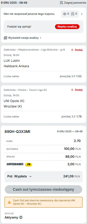 LUK u siebie poszuka 1. triumfu w CEV LM, a my 3. trafionego double’a z rzędu! Gramy o 241 PLN