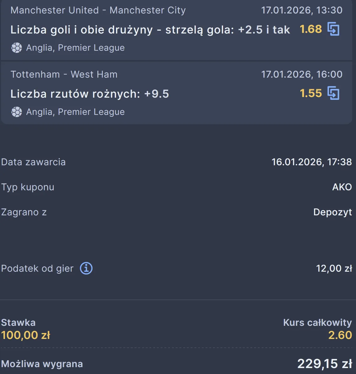 Postawię na powyżej Obie strzelą i powyżej 2.5 gola. Do składu United powinni już wrócić najważniejsi zawodnicy opuszczający Puchar Narodów Afryki. W dodatku grają przecież u siebie pod wodzą byłego żołnierza Sir Alexa. Nie sądzę więc, aby tutaj odpuścili. City zaś, jak to City, myślę, że będzie chciało nastrzelać. Nie da się przecież ukryć, że dzisiejsi rywale nie są perfekcyjni w obronie. Obnażyć ich potrafiło przecież Brighton za pomocą swojego drugiego garnituru. U Obywateli w ofensywie robi się natomiast niesamowicie ciasno i myślę, że każdy będzie chciał błysnąć. Zakład tego typu postawisz w STS. Jeśli nie masz jeszcze konta u największego polskiego bukmachera, możesz założyć je z naszym kodem promocyjnym STS.