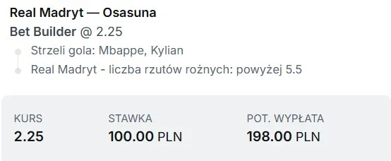 Real Madryt powinien wejść w to spotkanie zdecydowanie i od pierwszych minut narzucić swój rytm gry. Zacznijmy od tego, że typuję bramkę Kyliana Mbappé – Francuz będzie chciał nie tylko rozpocząć sezon od mocnego akcentu, ale też wyrównać, a może i rozbić swoje statystyki strzeleckie. W poprzedniej kampanii uzbierał aż 31 goli, więc naturalnie oczekiwania wobec niego są ogromne. Do tego dorzucam zakład na powyżej 5,5 rzutów rożnych dla Realu. „Królewscy” lubią grać ofensywnie, a zwłaszcza na Estadio Santiago Bernabéu, gdzie zwykle są jeszcze bardziej zdeterminowani do ataku. Warto zauważyć, że podczas Klubowych Mistrzostw Świata wykonywali średnio 5,3 rożnych na mecz – a skoro teraz mierzą się w ligowej rywalizacji, liczba ta może spokojnie pójść w górę. Zachęcam do regularnego obserwowania zakładki typy dnia lub do sprawdzenia innych propozycji na Zagranie!