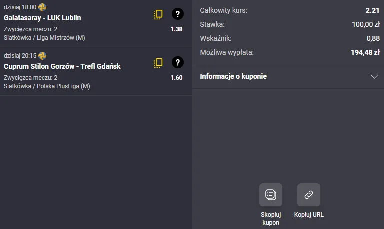 Natomiast Galatasaray jest przykładem drużyny, która „musi” dobrze wejść w zmagania. Inaczej ma trudności z wygrywaniem, co było widać, jak na dłoni, choćby w poprzedniej kolejce CEV Ligi Mistrzów. Teraz o narzucenie presji rywalowi będzie o tyle trudniej, że lublinianie odpoczęli po szalonym tygodniu. Dlatego też ostatecznie decyduję się obstawić wygraną polskiego klubu.