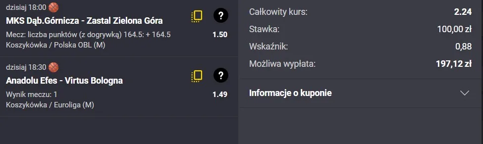 Przed nami emocjonujący wieczór z koszykówką – w Orlen Basket Lidze MKS Dąbrowa Górnicza zmierzy się z rozpędzonym Zastalem Zielona Góra w meczu, który może mieć duże znaczenie w kontekście walki o play-offy. Z kolei w Eurolidze Anadolu Efes podejmie Virtus Bolonię, a obie drużyny spróbują przedłużyć swoje nadzieje na lepsze zakończenie trudnego sezonu.