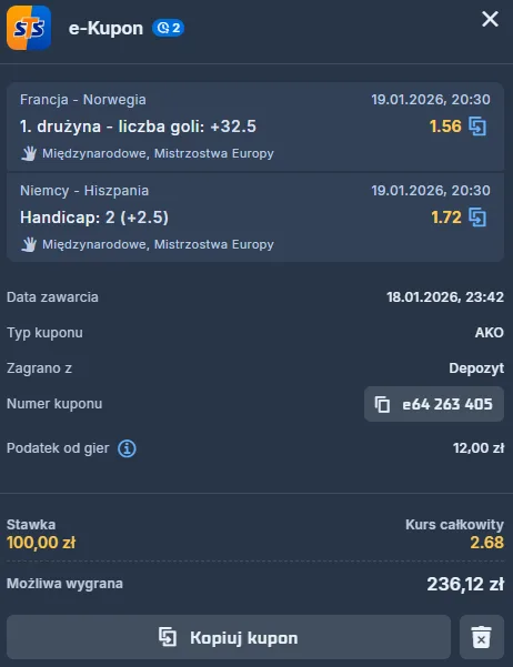 Mając na uwadze formę tych drużyn, jakość poszczególnych zawodników i sytuację, spodziewam się triumfu Hiszpanów, zwłaszcza przy doliczeniu odpowiednio wysokiego handicapu. Też to właśnie ten typ piłki ręcznej jest tym, który obstawiam z kodem promocyjnym STS-u. Hiszpanie są w zbyt dobrej formie i świadomi tego, jak wiele może kosztować ich porażka. Do tego zawsze dobrze jest awansować z dodatkowym, choć jednym punktem. Zwłaszcza, kiedy rywal zasłynął w ostatnim czasie z tego, że popełnia proste błędy własne, kiedy znajduje się pod presją; a ta tylko będzie rosnąć…
