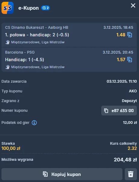 FC Barcelona – Paris Saint-Germain: typy, kursy bukmacherskie i zapowiedź meczu (03.12.2025 r.)