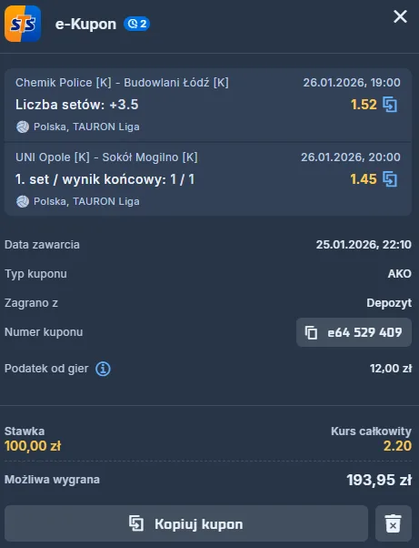 LOTTO Chemik Police – PGE Budowlani Łódź: typy, kursy bukmacherskie i zapowiedź meczu (26.01.2026 r.)