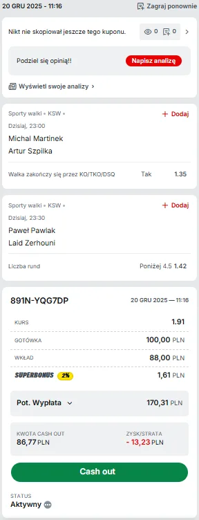 - Postawić 1. kupon singiel na zwycięstwo Artura Szpilki,