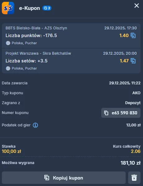 PGE Projekt Warszawa – PGE GiEK Skra Bełchatów: typy, kursy bukmacherskie i zapowiedź meczu (29.12.2025 r.)