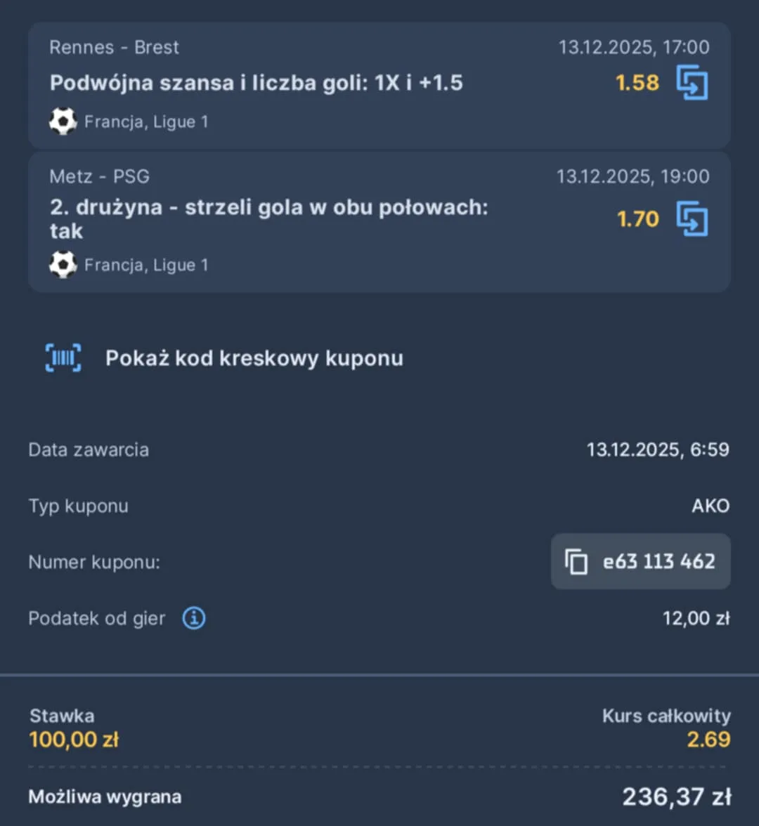 Dziś oprócz Serie A pod lupę wezmę także dwa starcia z francuskiej Ligue 1. Będą to mianowicie pojedynki Rennes z Brestem oraz Metz z PSG. Czy mistrzowie Francji wrócą – przynajmniej na jeden dzień – na fotel lidera? Sprawdź, co moim zdaniem warto dziś zagrać. Życzę miłej lektury i powodzenia na kuponach!