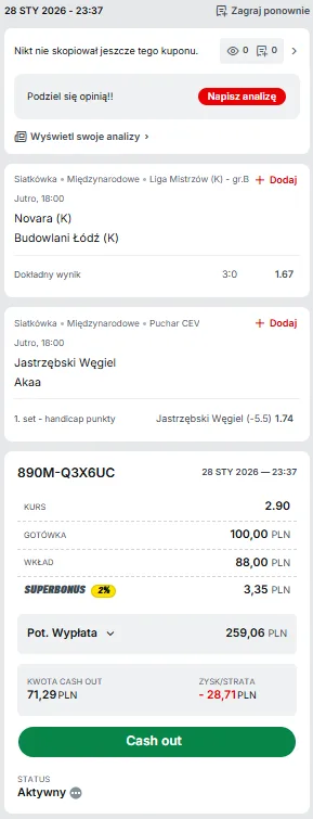 Igor Gorgonzola Novara – PGE Budowlani Łódź: typy, kursy bukmacherskie i zapowiedź meczu (29.01.2026 r.)