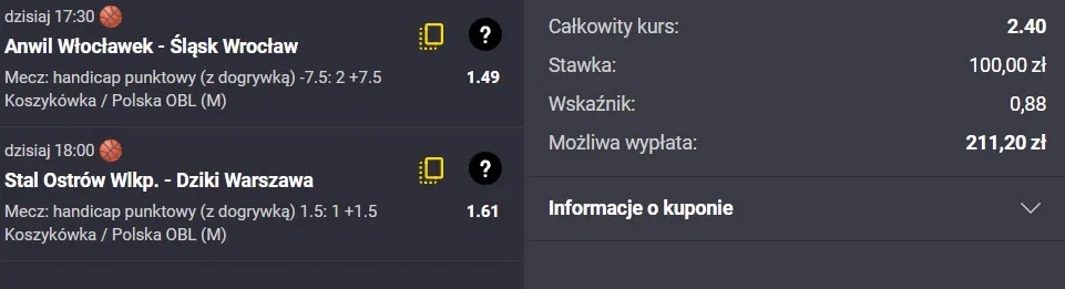 Śląsk Wrocław jest w lekkim kryzysie, ale trudno uwierzyć, że potrwa on długo. Pod wodzą takiego szkoleniowca jak Ainars Bagatskis zespół powinien stosunkowo szybko wrócić na właściwe tory. Warto też zauważyć, że Śląsk w tym sezonie nie przegrał jeszcze trzech meczów z rzędu, co pokazuje pewien poziom stabilności mimo ostatnich wahań formy. Do tego dochodzi aspekt tzw. „świętej wojny” – starcia z Anwilem Włocławek od lat gwarantują ogromne emocje. Niezależnie od formy czy miejsca w tabeli, te mecze rządzą się swoimi prawami i często są bardzo wyrównane. Dlatego spodziewam się twardej walki i spotkania, które może rozstrzygnąć się w końcówce. Typuję handicap +7.5 dla Śląska Wrocław. Pamiętaj, że czekają na Ciebie tylko i wyłącznie legalni bukmacherzy!