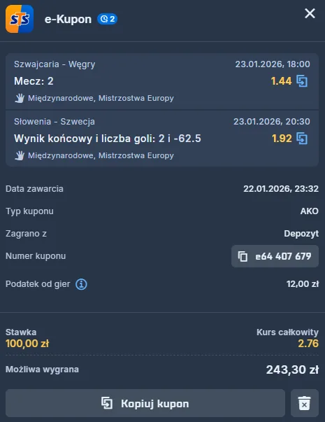 Słoweńcy przeciwstawią się Szwedom, a Szwajcarzy Węgrom? Gramy o 243 PLN