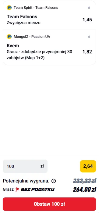 Spirit zrewanżuje się ekipie Falcons? Gramy esport z kursem 2.64!