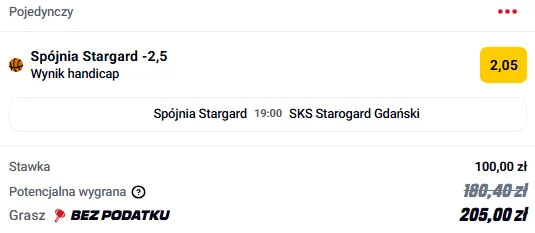 Spójnia bez wątpienia jest w top 3 faworytów do awansu do Orlen Basket Ligi. Początek sezonu nie należy do najłatwiejszych przez ciągłe problemy kadrowe, ale potencjał, jakim dysponują, jest ogromny i prędzej czy później musi zacząć procentować. Takie mecze jak dzisiejszy mogą zbudować naprawdę solidne morale i stać się paliwem napędowym na kolejne tygodnie. W ostatniej kolejce Spójnia pokazała charakter – pokonała Miners Katowice, odwracając wynik z 58:50 na 61:74. To zwycięstwo nie tylko daje punkty, ale także cementuje zespół mentalnie. Dziś spodziewam się, że zobaczymy pełnię możliwości drużyny Marka Popiołka, zwłaszcza że grają u siebie, gdzie mają solidny bilans 3:1. Typuję handicap -2.5 na Spójnię Stargard. Zachęcam do regularnego obserwowania zakładki typy dnia lub do sprawdzenia innych propozycji na Zagranie!