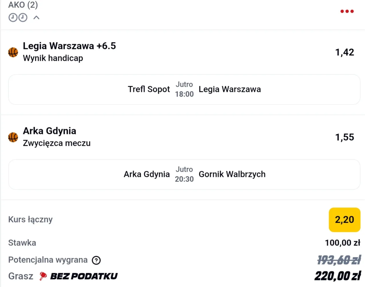 Trefl Sopot, co ciekawe, jest stawiany w roli faworyta – zapewne dlatego, że w tym sezonie pokonał już Legię dwukrotnie. Moim zdaniem trzeba jednak wyraźnie rozdzielić tamte mecze od obecnej sytuacji. Od tego czasu Legia odświeżyła skład, ustabilizowała rotację i wyleczyła większość kontuzji. Jeśli dodatkowo do gry wróci Matthias Tass, zadanie Trefla stanie się naprawdę wymagające. Skład Legii jest obecnie najdroższy w lidze i jakościowo należy do ścisłej czołówki. To zespół złożony z zawodników z najwyższej półki, bez wyraźnych słabych punktów w rotacji. Trefl natomiast wciąż zmaga się z dużą nierównością formy – potrafi zagrać świetnie, by za chwilę całkowicie zawieść. Dlatego w tym starciu skłaniam się w stronę Zielonych. Typuję handicap +6,5 dla Legii Warszawa. Pamiętaj, że czekają na Ciebie tylko i wyłącznie legalni bukmacherzy!
