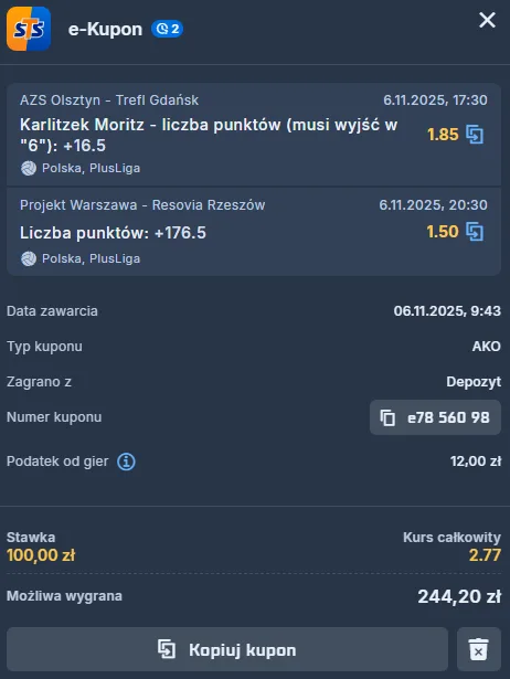Podsumowując, jest to tego typu konfrontacja ligowa, która może potrwać nawet 5 setów. Takie przypuszczenia można snuć za sprawą tego, w jak wysokiej formie są siatkarze PGE Projektu i Asseco Resovii. W dodatku rzeszowianie tracą do aktualnych liderów PlusLigi raptem punkt, więc mogą błyskawicznie się wspiąć. Tym samym zanosi się na mecz walki. Taki, w którym to liderzy mają za zadanie pokazać się z jak najlepszej strony. Stąd też obstawiam jako typ dnia, że zespoły zdobędą przeszło 176 punktów. Zapowiada się na klasyczny mecz walki, w którym żadna ze stron nie odpuści.