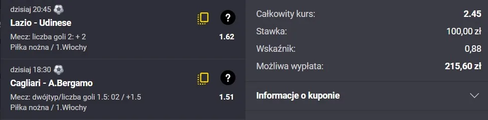 Lazio i Udinese Calcio od lat toczą wyrównane pojedynki. W 5 ostatnich bezpośrednich spotkaniach obie drużyny trafiały do siatki, co dobrze pokazuje charakter tych starć. Obecnie oba zespoły nie mają już wielkiej presji ligowej – Lazio skupia się głównie na pucharze i może być podbudowane ostatnim awansem, natomiast Udinese miało więcej czasu na regenerację i spokojne przygotowanie do meczu. W takich okolicznościach często oglądamy bardziej otwarte spotkania, bez kalkulacji i z większym naciskiem na ofensywę. Typuję powyżej 2 goli w meczu. Zachęcam do regularnego obserwowania zakładki typy dnia lub do sprawdzenia innych propozycji na Zagranie!
