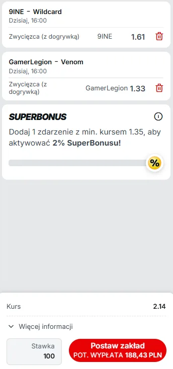 Dzisiaj gramy z bukmacherem Superbet, który ma w ofercie sporą liczbę zakładów na esport. Sprawdź kod promocyjny superbet i przekonaj się sam.
