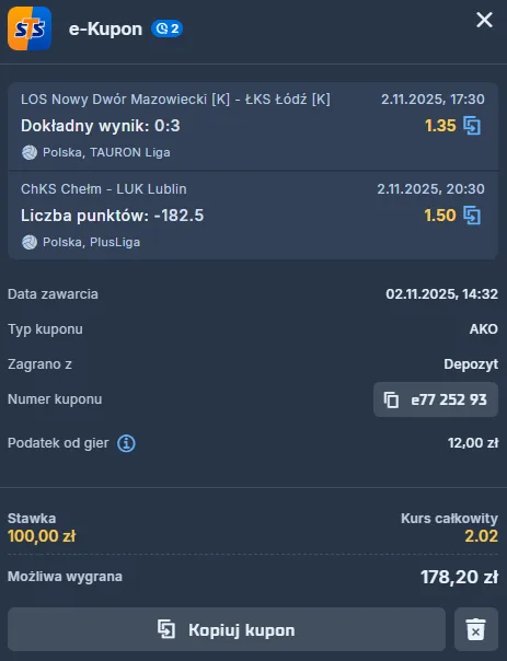 Nad tą kwestią można się też zastanawiać o tyle, że beniaminek PlusLigi wyraźnie lepiej wszedł w sezon niż po raz pierwszy występujące w TauronLidze. W takiej sytuacji niczym dziwnym nie będzie, jeśli InPost ChKS ponownie wygra którąś z partii lub zdobędzie przynajmniej tyle samo punktów, co w starciu z PGE Projektem. Moim 2. siatkarskim typem na dziś – stawianym wraz z kodem promocyjnym STS-u – jest wskazanie, że zespoły zdobędą w sumie mniej niż 183 punkty. O ile jeszcze gospodarze w derbowym spotkaniu zrobią wszystko, żeby utrudnić życie mistrzowi Polski, tak LUK powinien być w stanie odeprzeć ich zakusy.