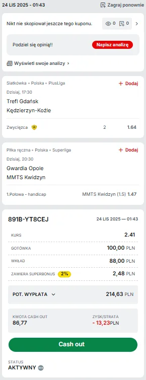 ZAKSA w poniedziałek poszuka wygranej, a my 4. trafionego double z rzędu! Gramy o 215 PLN